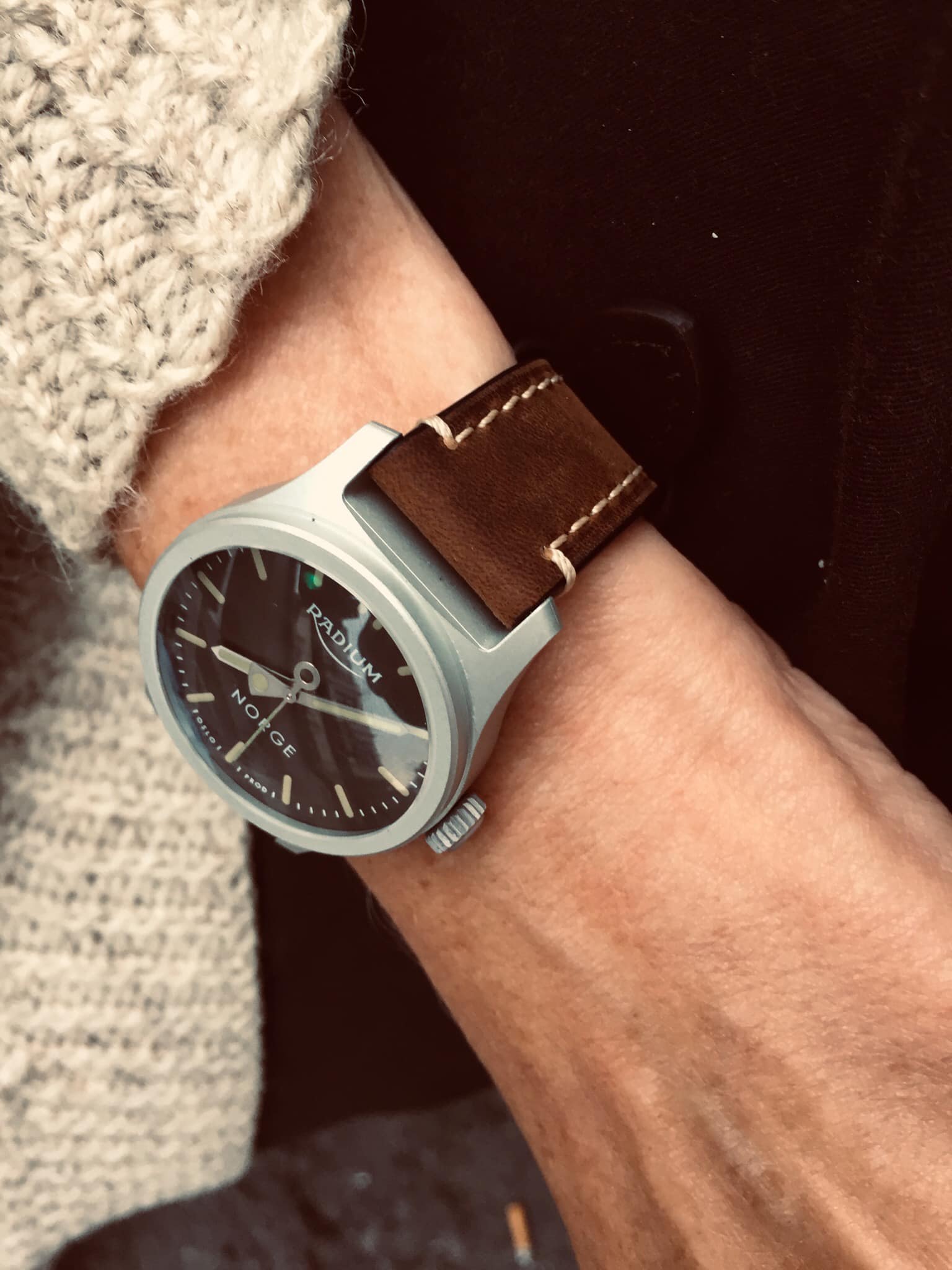 Es verfügt außerdem über einen zentralen Sekundenzeiger. Ein besonders gut ablesbarer Sekundenzeiger mit Leuchtmasse über die gesamte Breite.