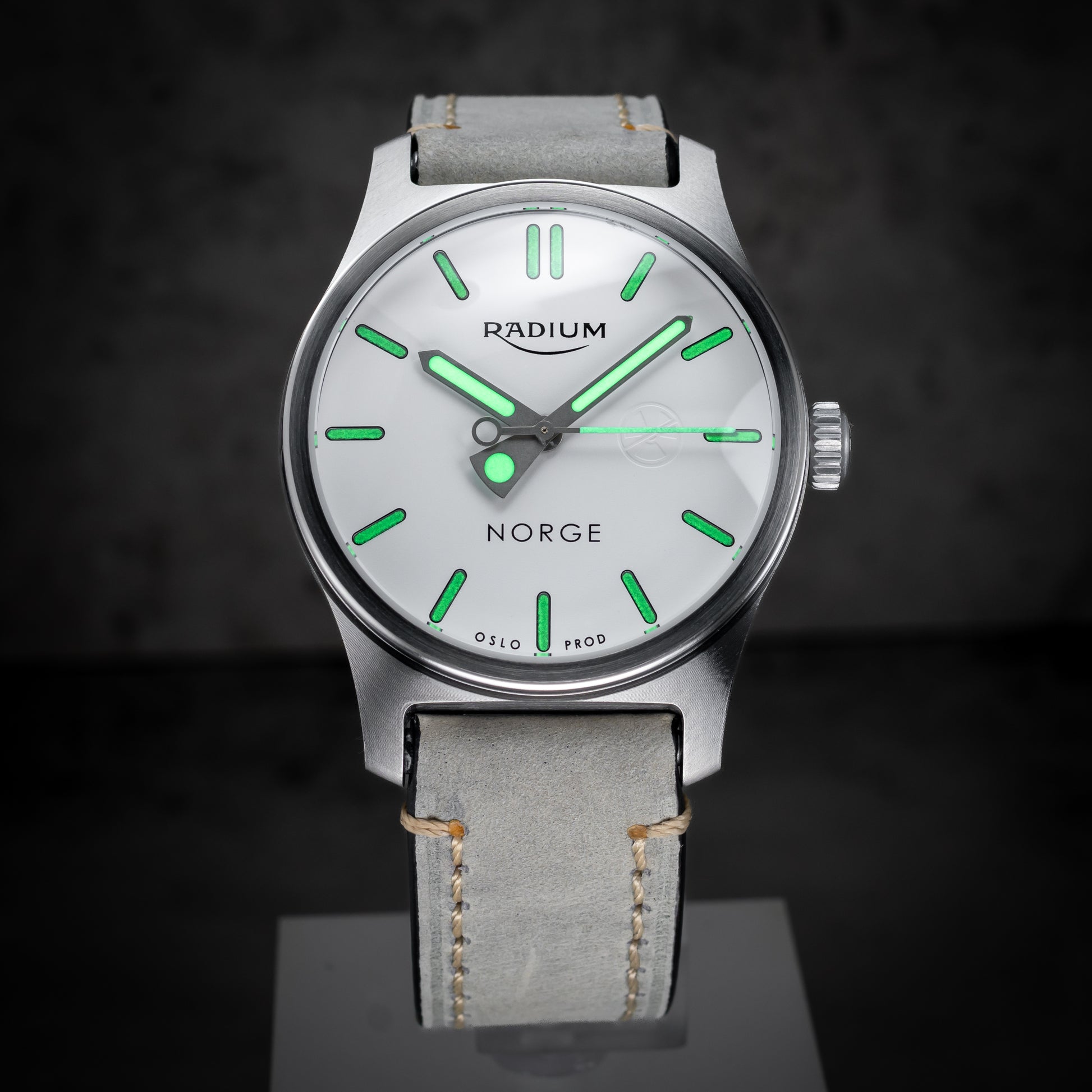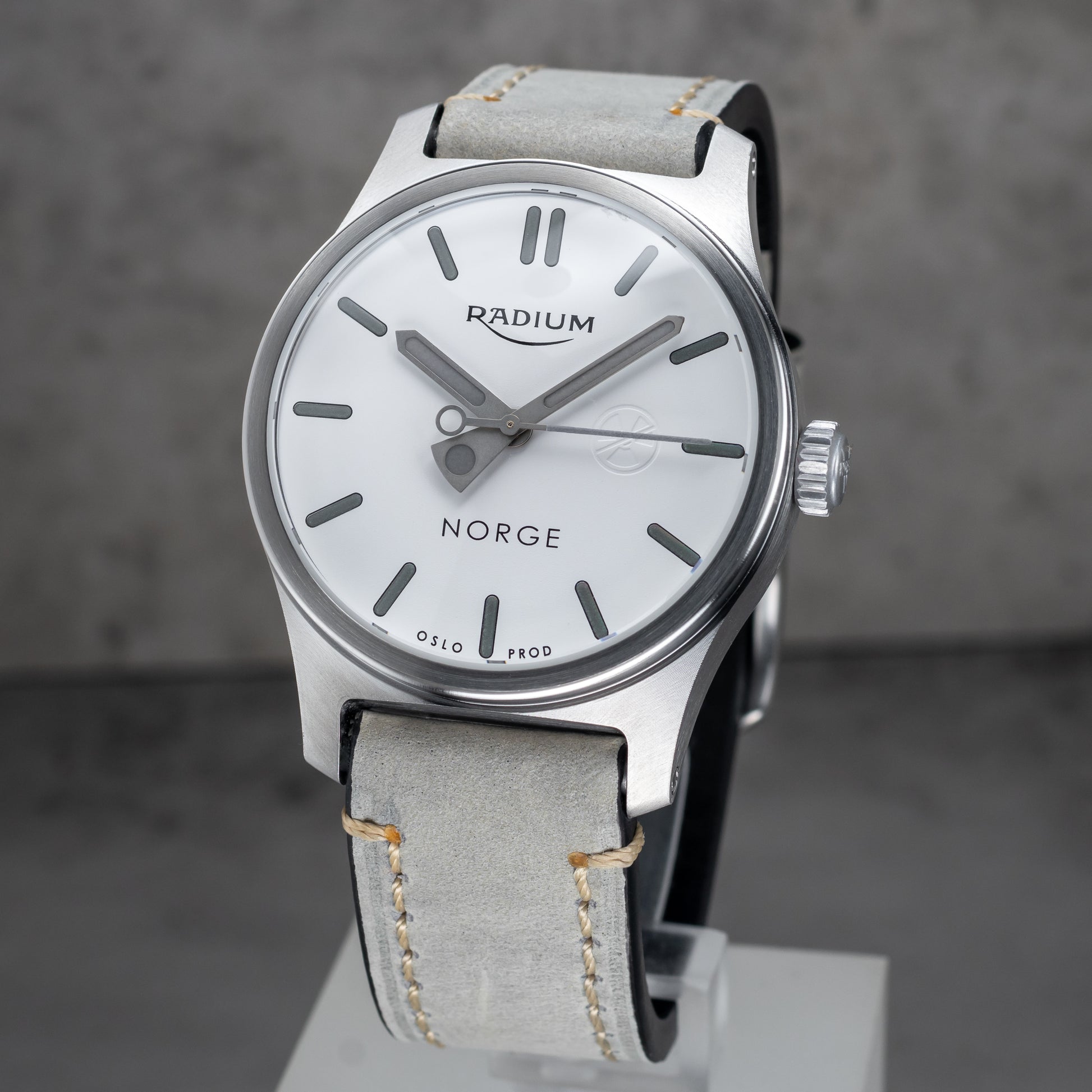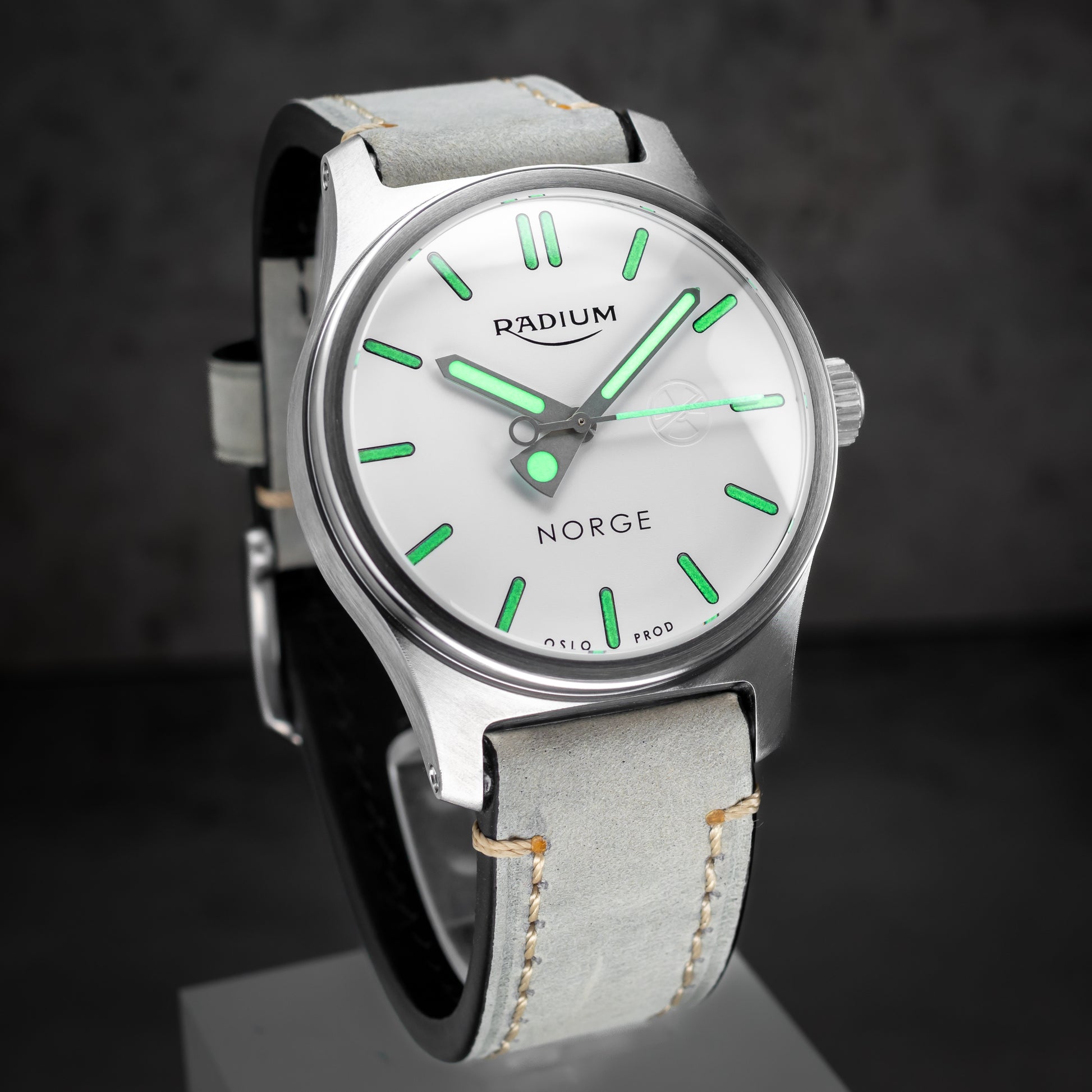 Radium ist für sein sandgestrahltes Aluminium bekannt, das unseren Werkzeuguhren ein mattes und dezentes Aussehen verleiht. Doch mit dem Wachstum von Radium wächst auch unsere Verantwortung, eine breitere Palette an Optionen anzubieten. Unser säurebeständiges Edelstahlmodell ist gebürstet und wird bei Tveita zusammengebaut, was es nicht nur funktional, sondern auch stilvoll genug für Reisen, Sommerausflüge und formelle Anlässe macht.