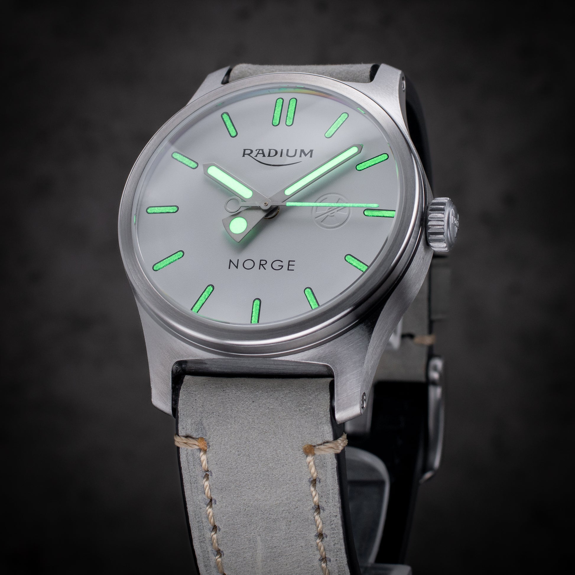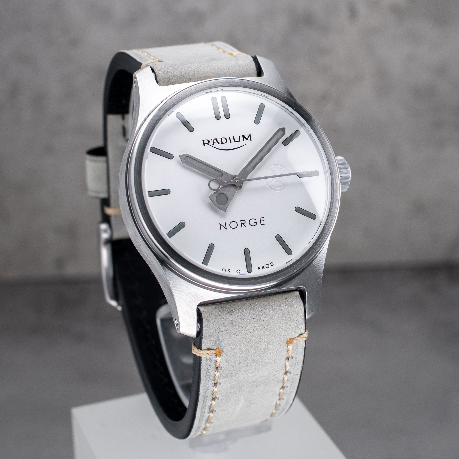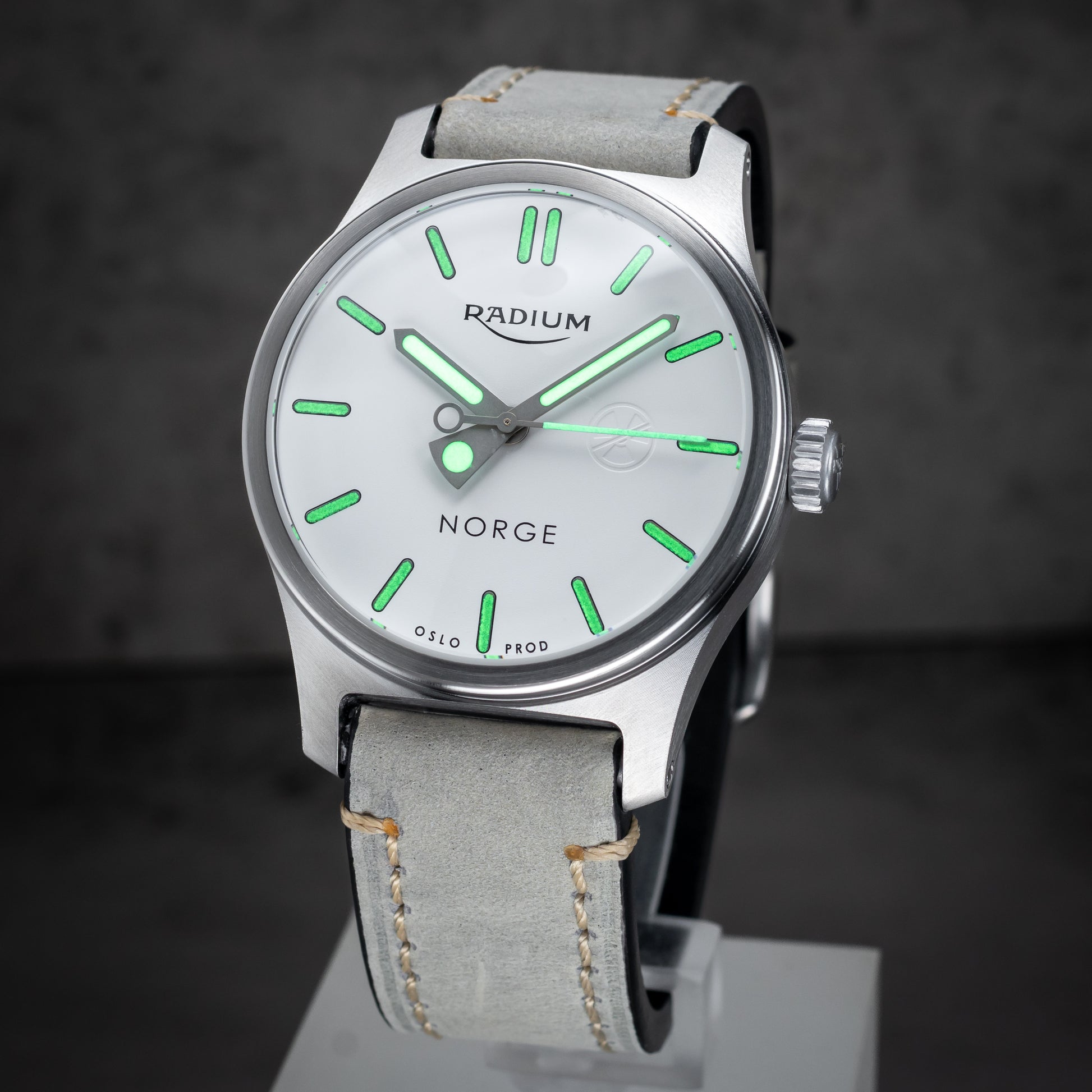 Radium ist für sein sandgestrahltes Aluminium bekannt, das unseren Werkzeuguhren ein mattes und dezentes Aussehen verleiht. Doch mit dem Wachstum von Radium wächst auch unsere Verantwortung, eine breitere Palette an Optionen anzubieten. Unser säurebeständiges Edelstahlmodell ist gebürstet und wird bei Tveita zusammengebaut, was es nicht nur funktional, sondern auch stilvoll genug für Reisen, Sommerausflüge und formelle Anlässe macht.