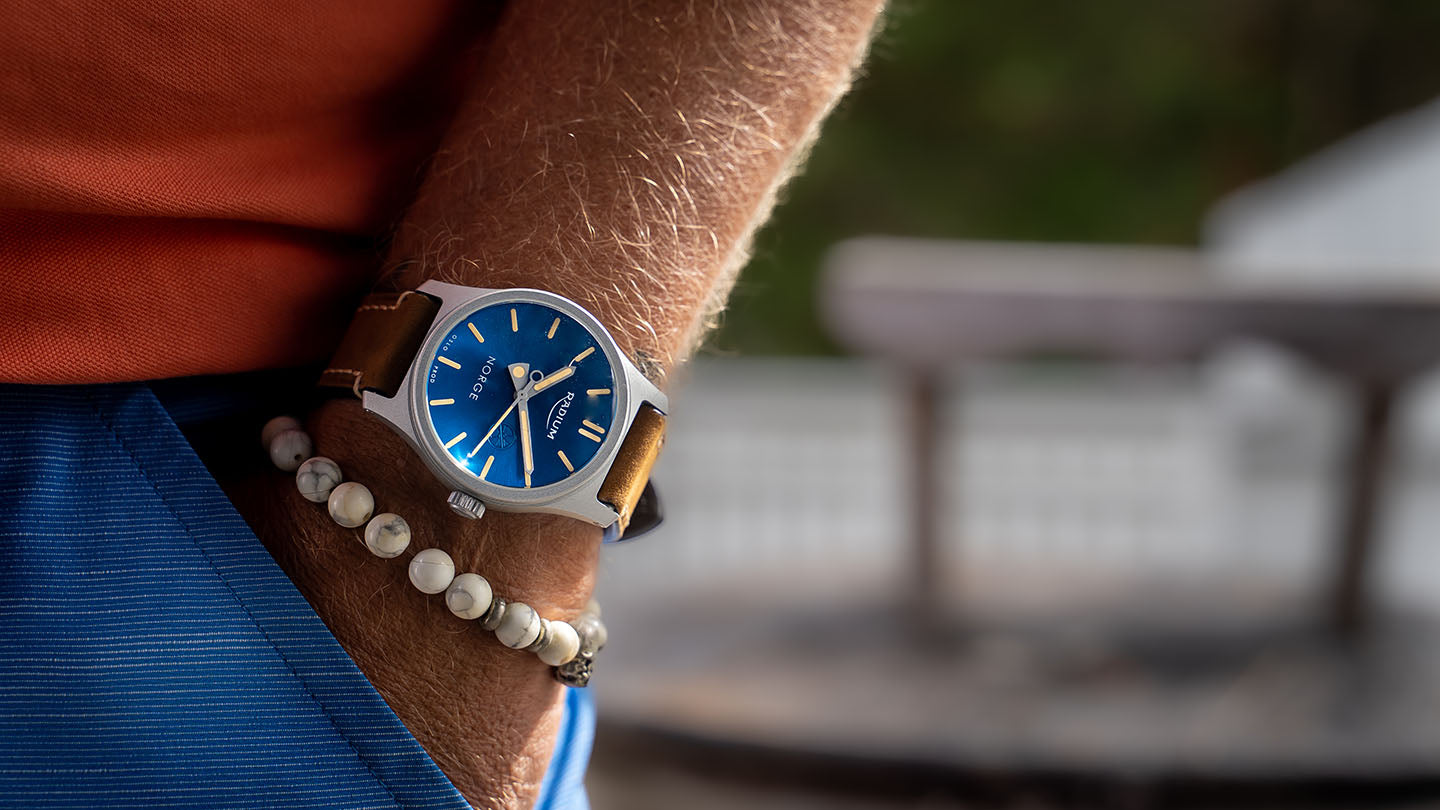 The sparkling blue dial shines as brightly as the sun itself, and feels right at home by the sea or near the water. Crafted from recycled Circal aluminium by Norsk Hydro, anodized for superior durability.