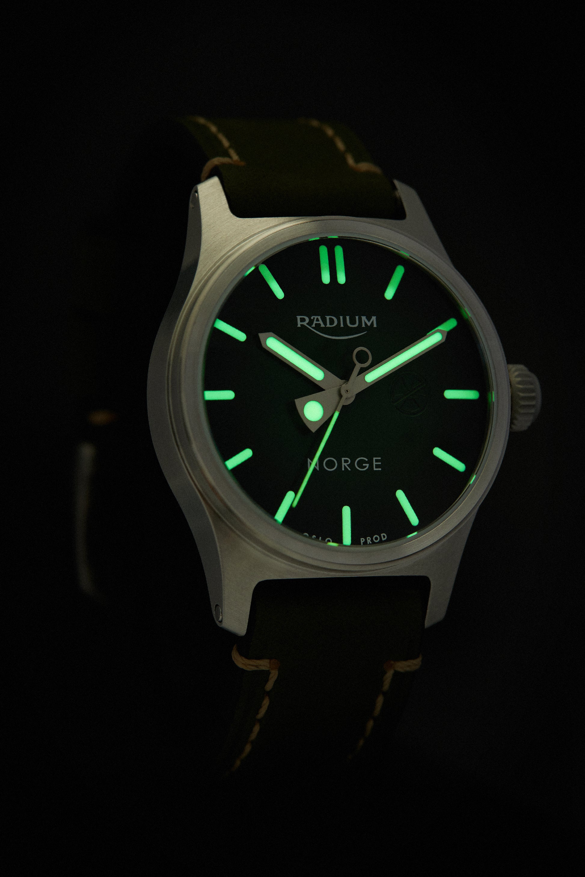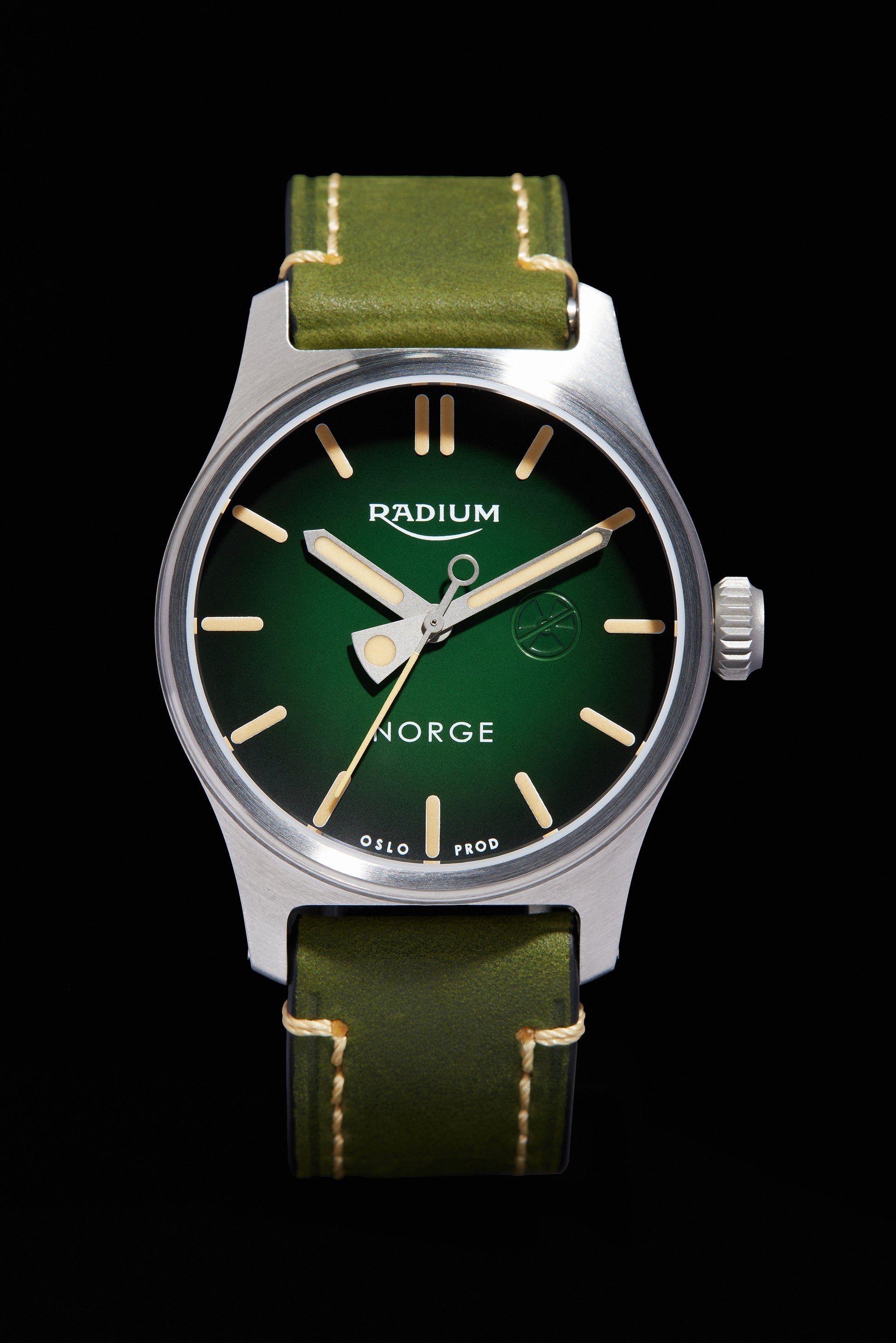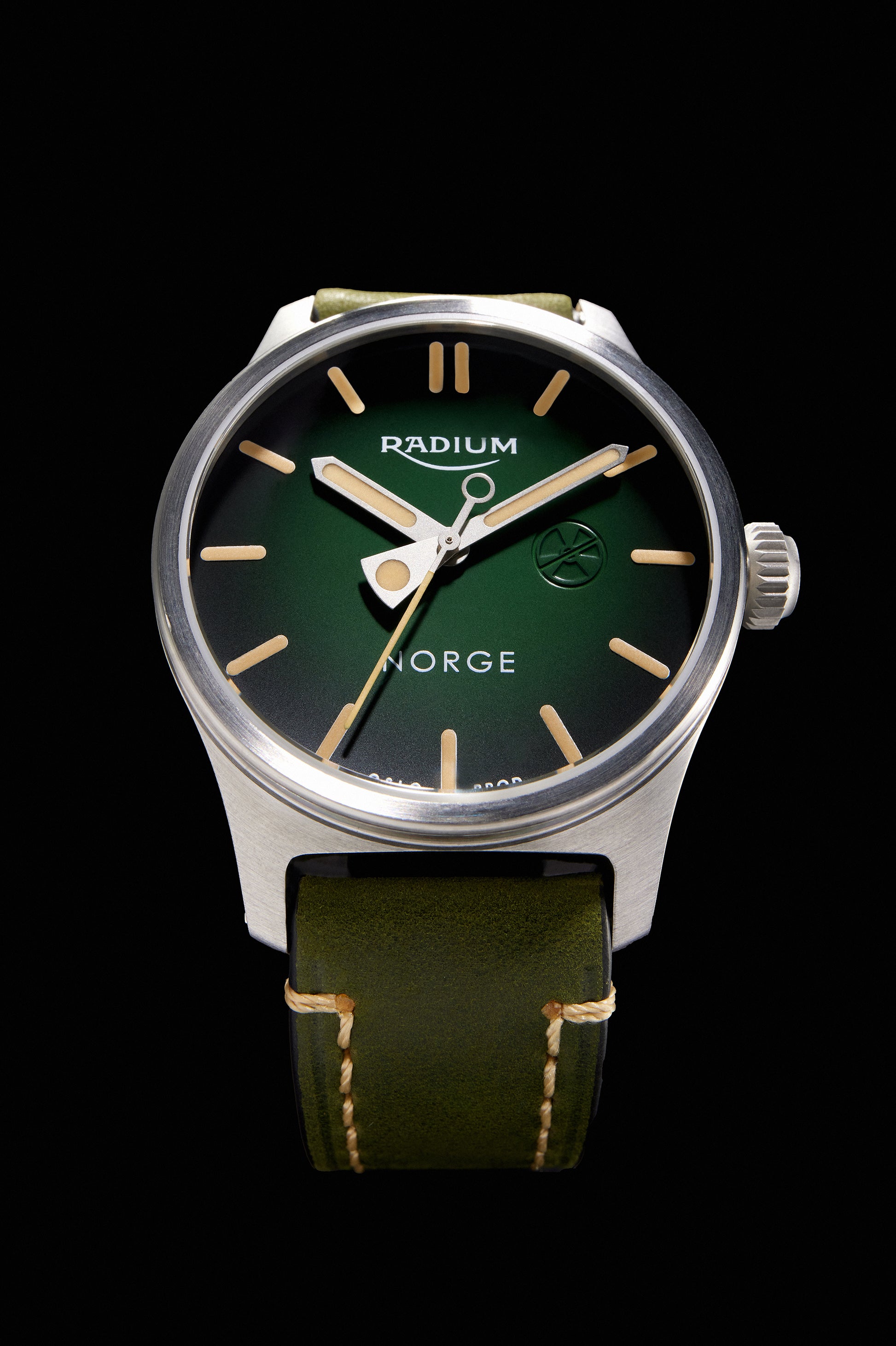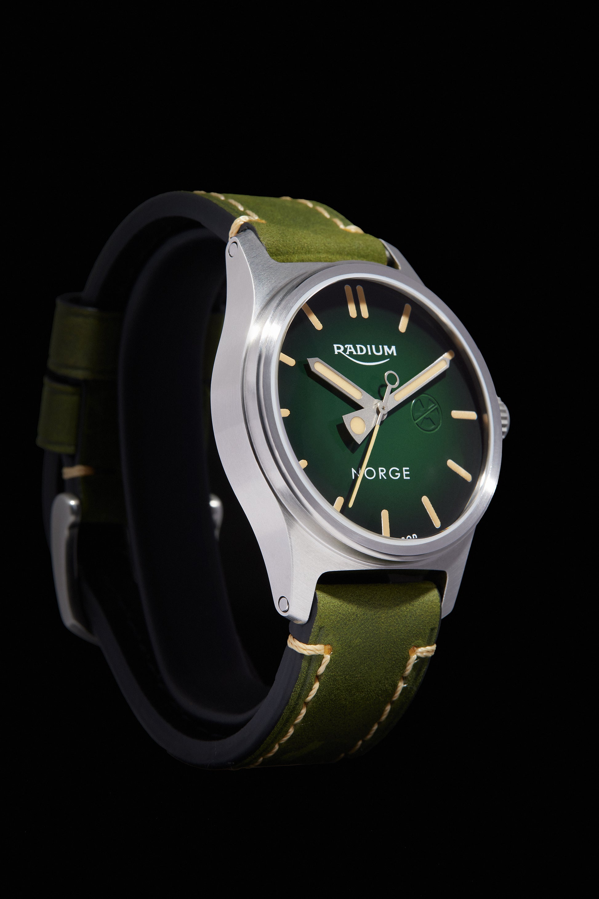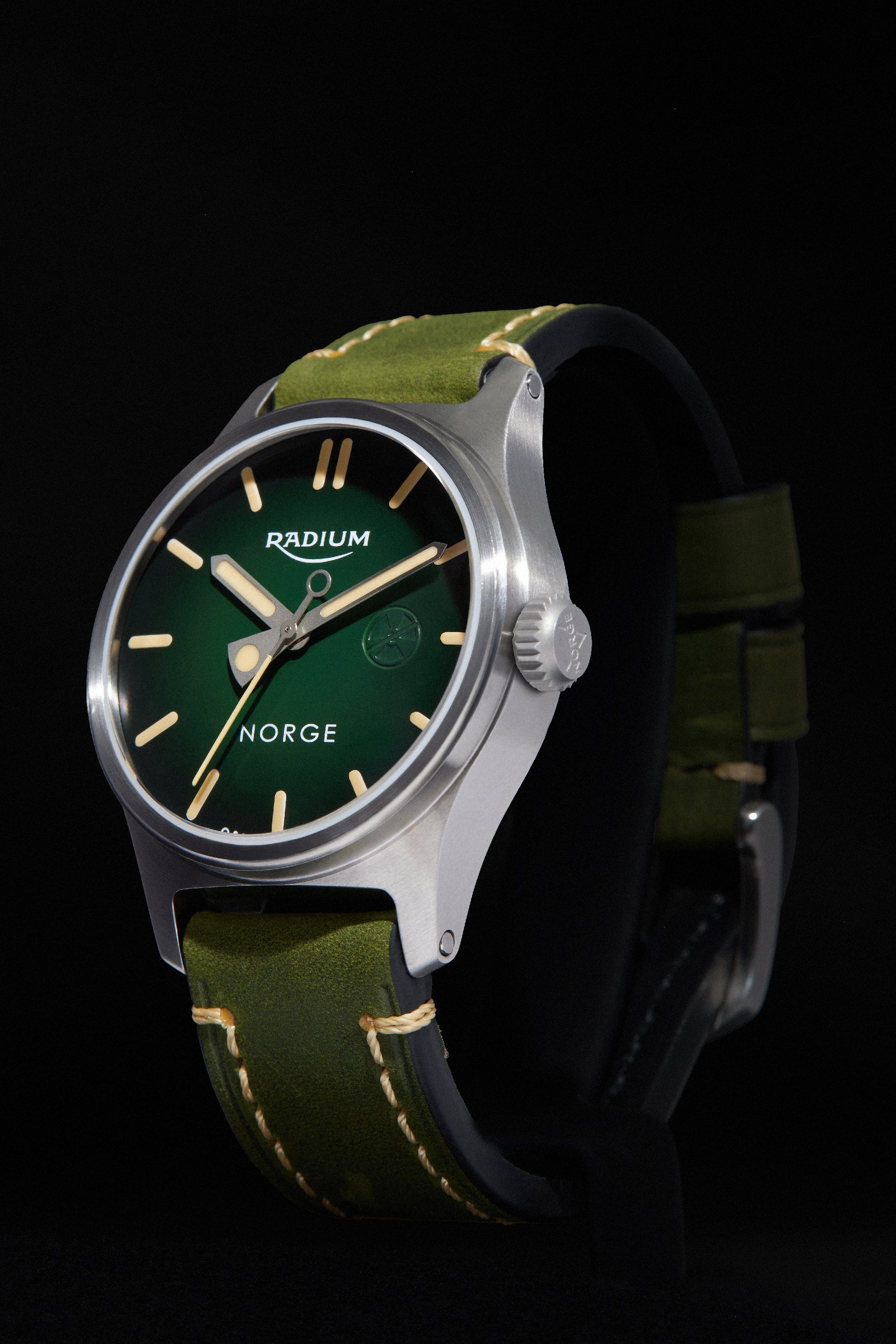 The Green Woodpecker’s gradient dial offers a distinctly vintage feel and is the watch of choice of our ambassador Kristopher Schau.