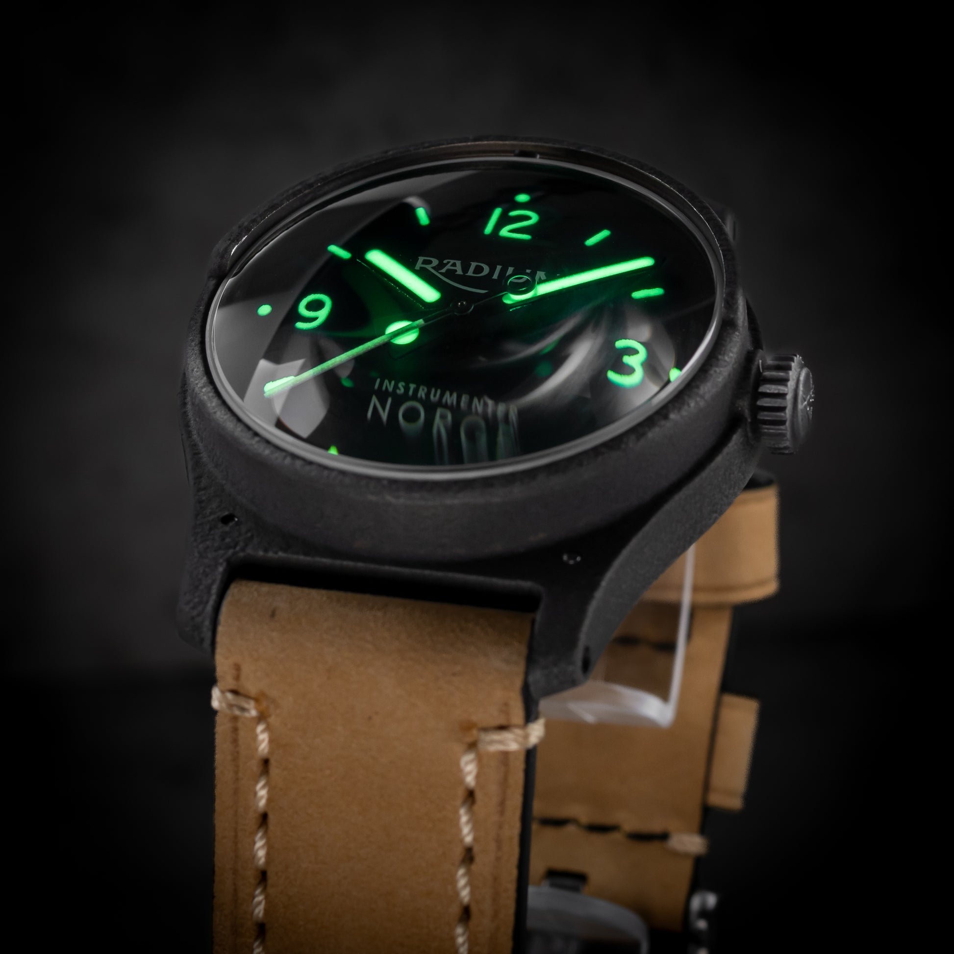 With its minimalist design, unmistakable protective crown cap, and raw patina, the Radium IKON embodies the spirit, materials, and aesthetic origins of Radium Instruments.